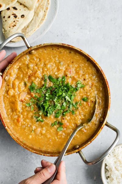 4. Add 2 cups of water to the mixture and let the curry cook for 20 minutes on high heat with the lid on, until the lentils are nice and soft.